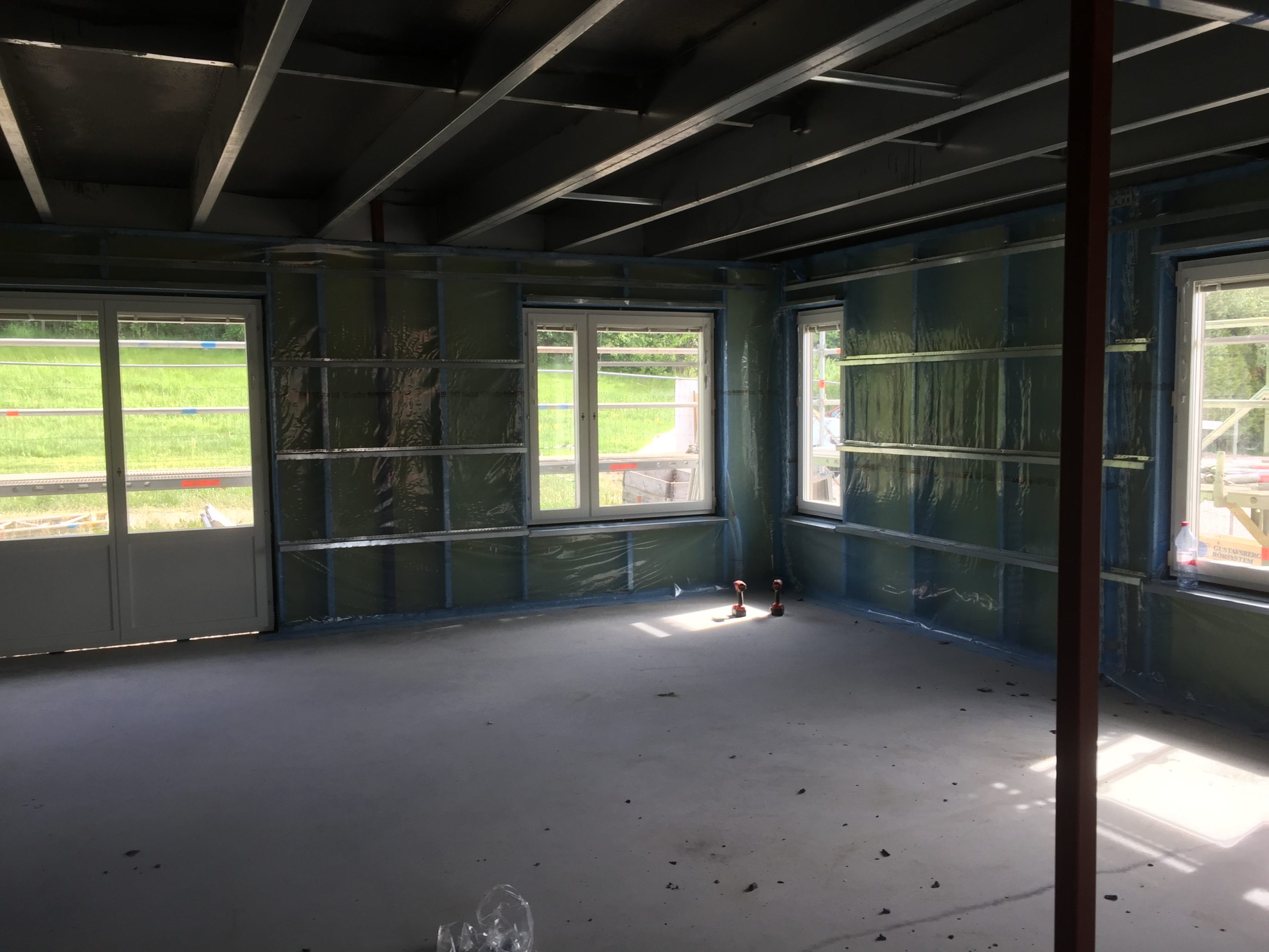 Väggar och bjälklag levereras med öppna installationsutrymmen och