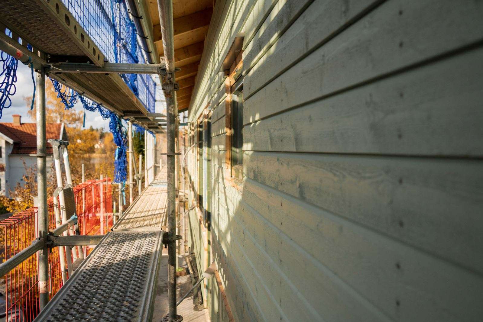 Genom den modulära uppbyggnaden får du en hög grad av arkitektonisk frihet. Våra väggar kan anpassas efter projektets krav på isolering, ljud, brandklass och uttryck. Fasadmaterialen kan kombineras helt fritt – puts, struktur, trä, skivmaterial eller tegel för att skapa exakt det utseende du önskar.